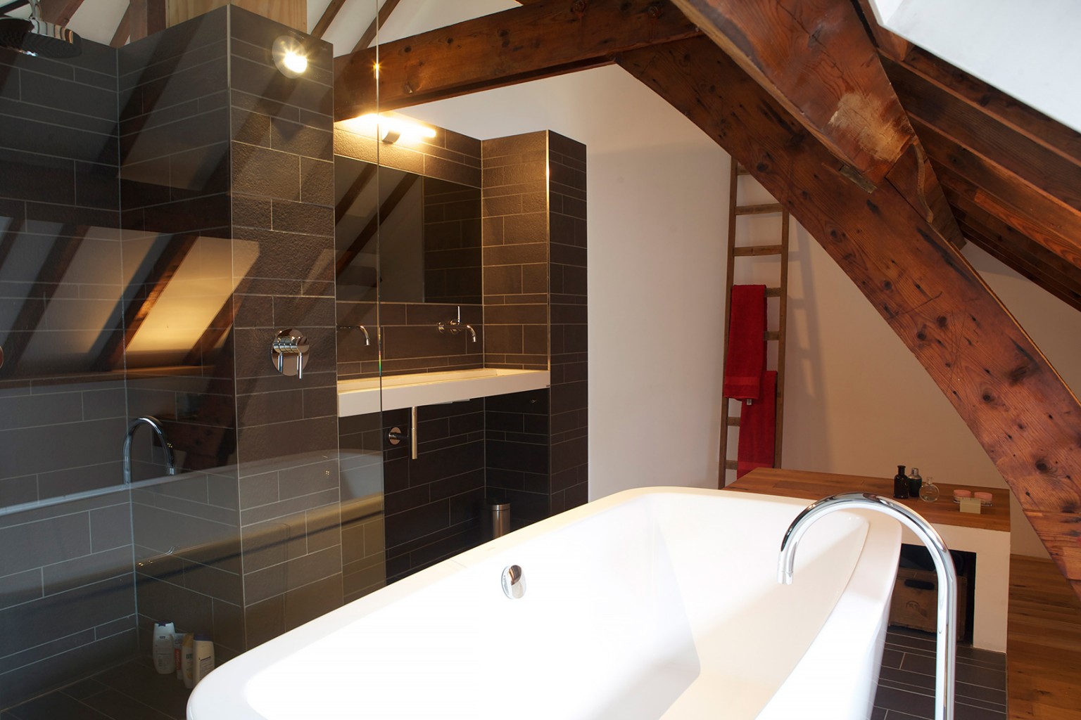 De ingrepen door de jaren heen hebben het pand zijn huidige charme en karakteristiek gegeven en hebben het uitgangspunt gevormd voor de herbestemming. Het uiterlijk is nagenoeg ongewijzigd gebleven. Alleen aan de langsgevels zijn een tweetal openingen terug gebracht die de toegang tot de woning en de toegang tot de tuin mogelijk maken. Daar waar mogelijk zijn de bestaande materialen hergebruikt.